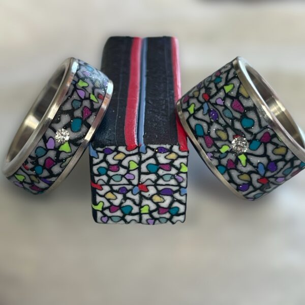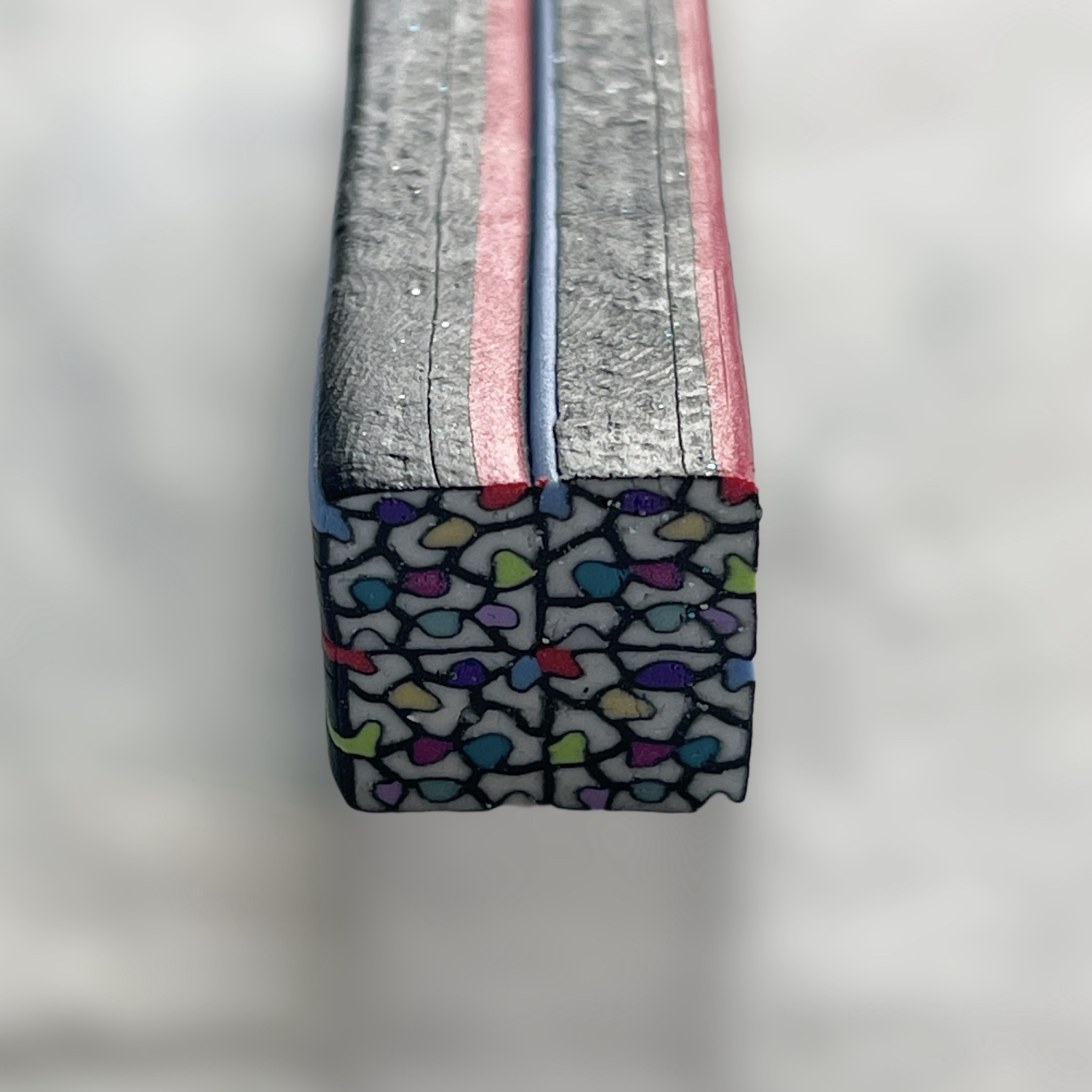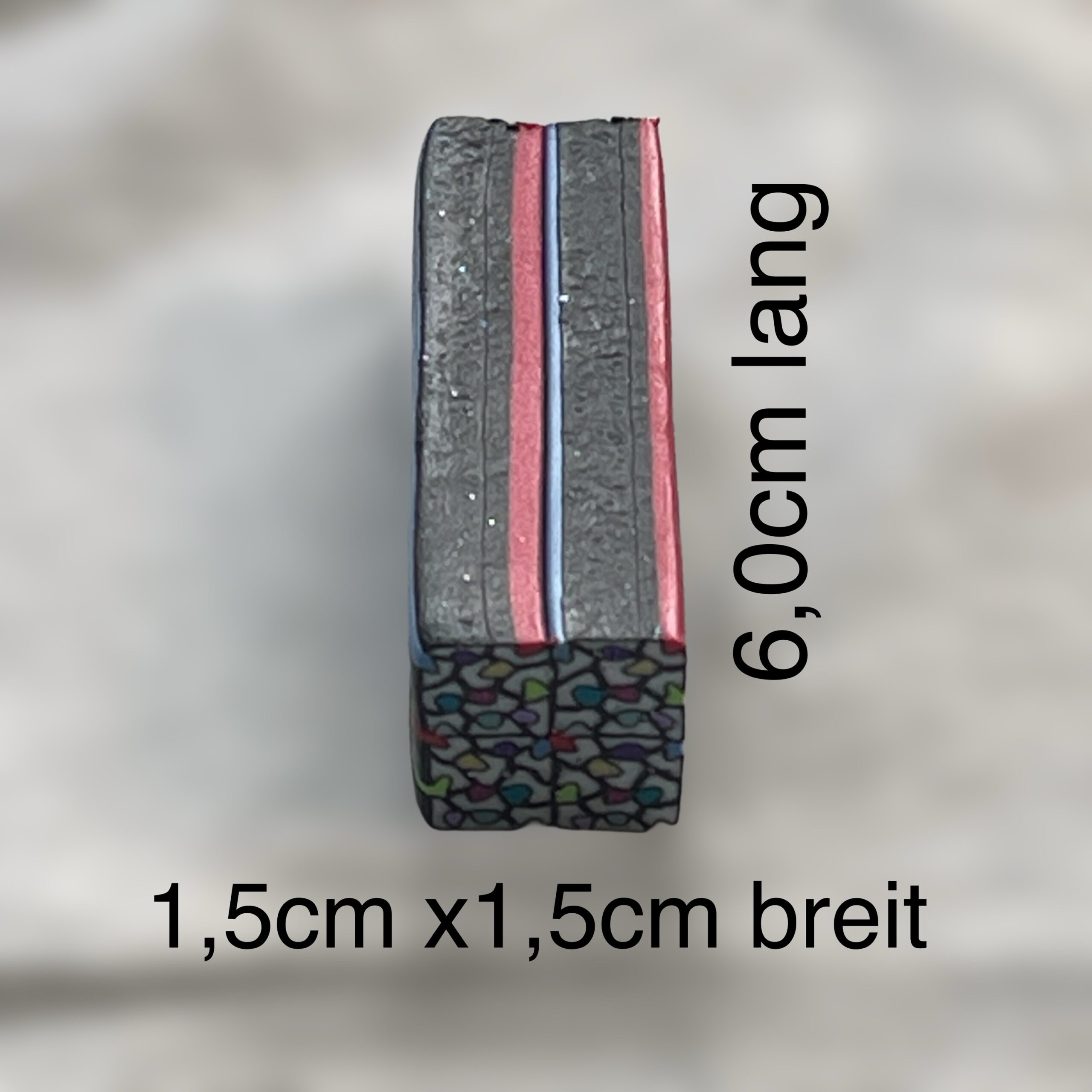 Vorgefertigte und ungehärtete Schmuckkeramik Cane zum befüllen von diversen Schmuckrohlingen. Wird im Backofen bei 110 Grad für 30min ausgehärtet.